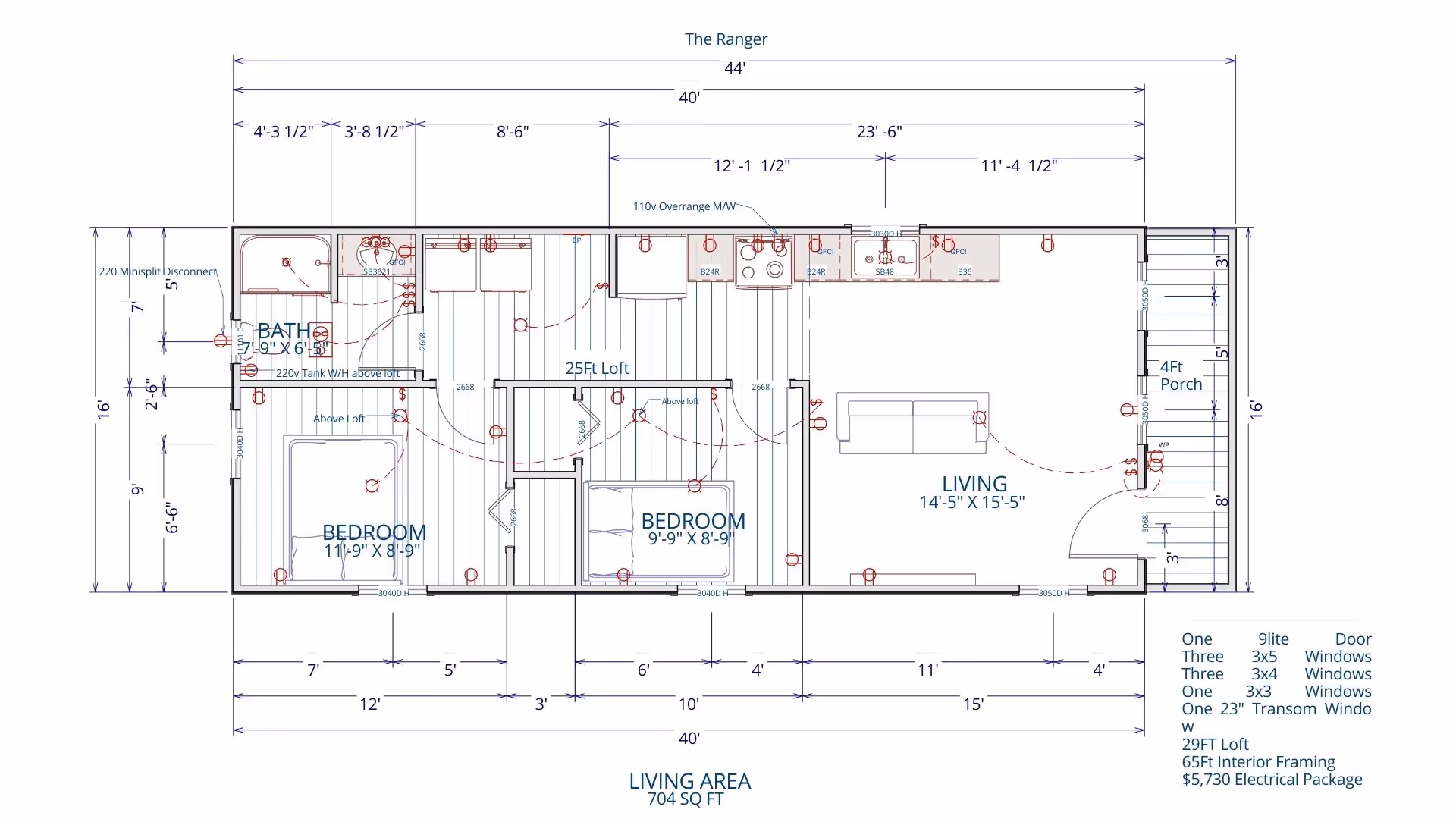This cabin shell floor plan features two bedrooms, one full bathroom, and an open living and kitchen area designed for everyday comfort. A central hallway creates separation between spaces, while the optional loft adds extra storage or sleeping flexibility without crowding the main floor.