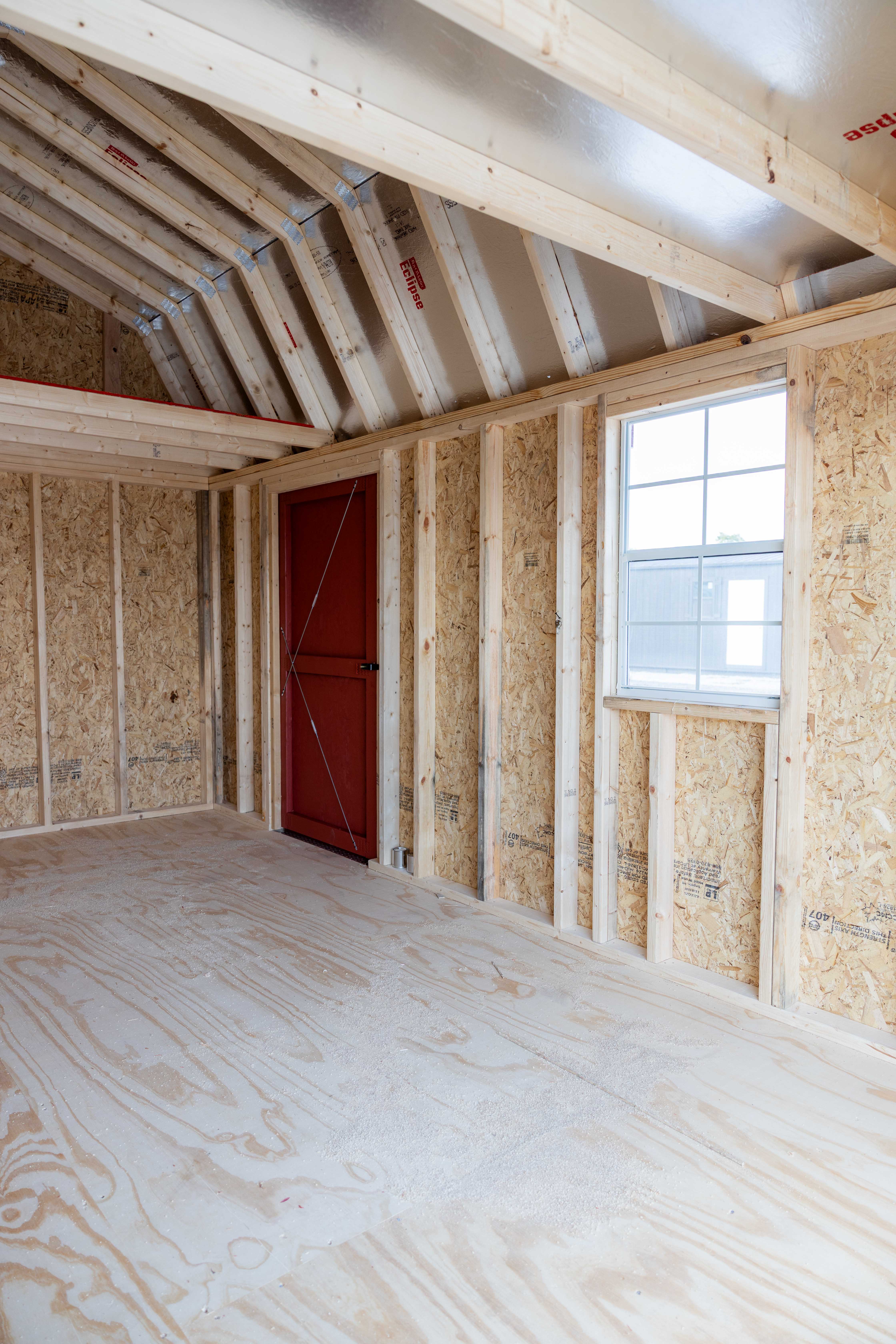 This 10x16 short lofted barn makes the most of its compact footprint with practical features. It has a set of double doors on one gable end for easy access, along with a single door and a window on one of the sidewalls to bring in natural light. Inside, it’s built with 4ft of loft on each end, giving you extra overhead storage and keeping the main floor clear for larger items.