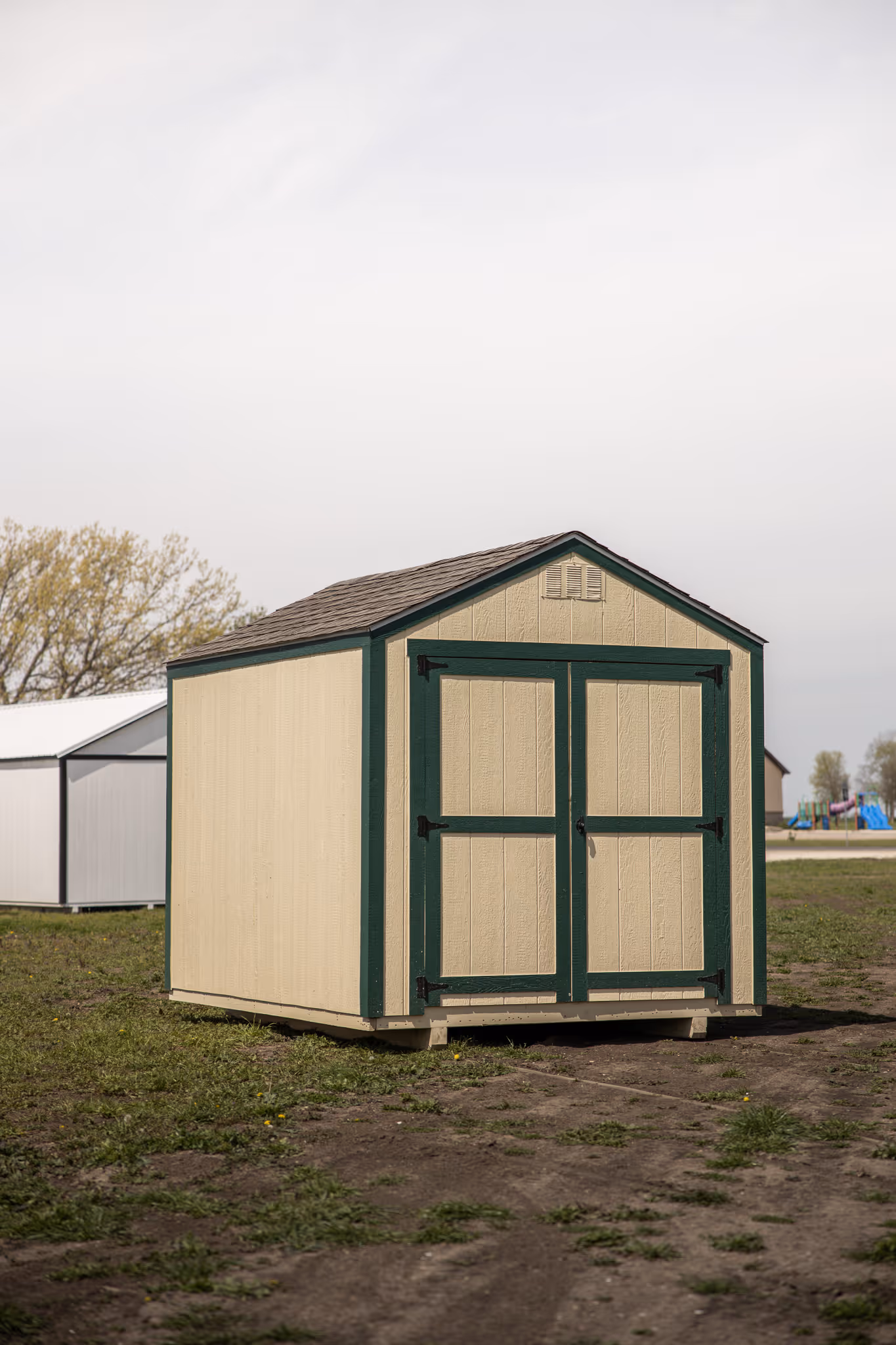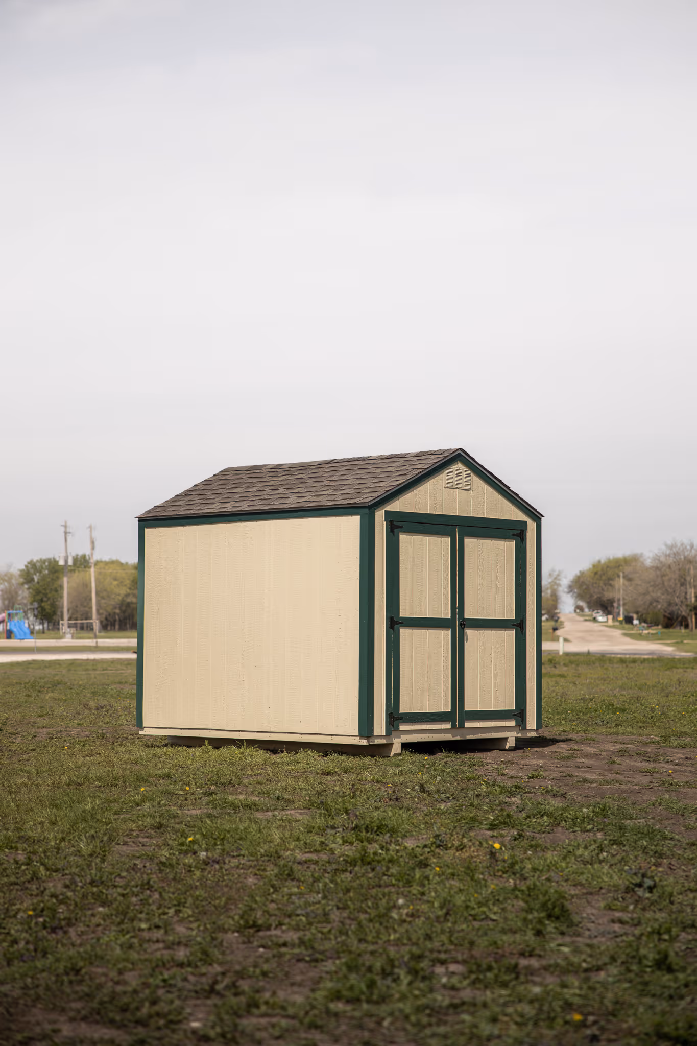 This value shed keeps it simple yet durable. Measuring at 8x10, it features a set of double barn doors on one gable end, offering easy access for storage. While minimal in design, it provides a high-quality solution for your basic storage needs, built to last a lifetime with sturdy lumber and craftsmanship.